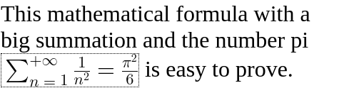 This MathML Core specification intends to address these issues by being as accurate as possible on the visual rendering of mathematical formulas using additional rules from the TeXBook’s Appendix G [TEXBOOK] and from the Open Font Format [OPEN-FONT-FORMAT], [OPEN-TYPE-MATH-ILLUMINATED]. It also relies on modern browser implementations and web technologies [HTML] [SVG] [CSS2] [DOM], clarifying interactions with them when needed or introducing new low-level primitives to improve the web platform layering.