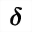 | U+1D7AD | U+03B4 | 数学用ゴシック体の太字の斜体の小文字デルタ MATHEMATICAL SANS-SERIF BOLD ITALIC SMALL DELTA | ||